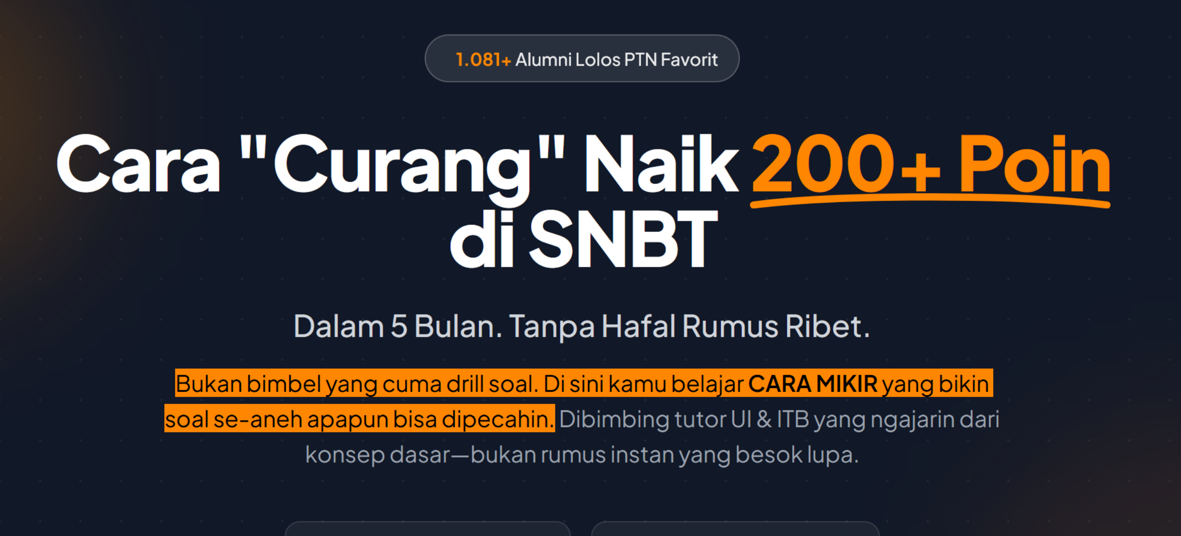 Bukan bimbel yang cuma drill soal. Di sini kamu belajar CARA MIKIR yang bikin soal se-aneh apapun bisa dipecahin. Dibimbing tutor UI & ITB yang ngajarin dari konsep dasar, bukan rumus instan yang besok lupa.